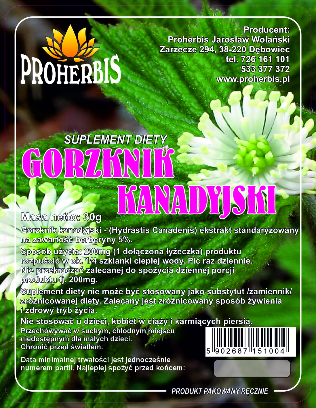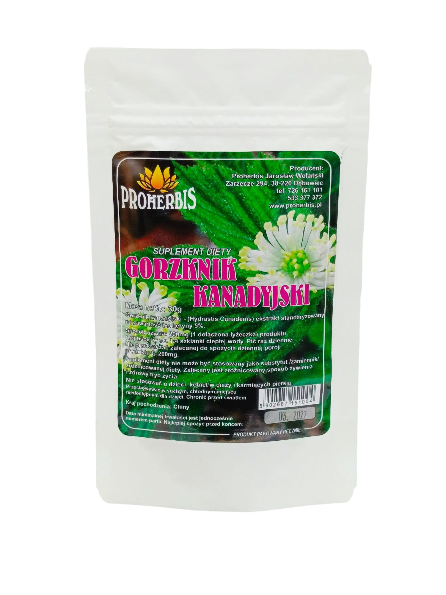 Gorzknik kanadyjski ekstrakt 5% berberyny 30g