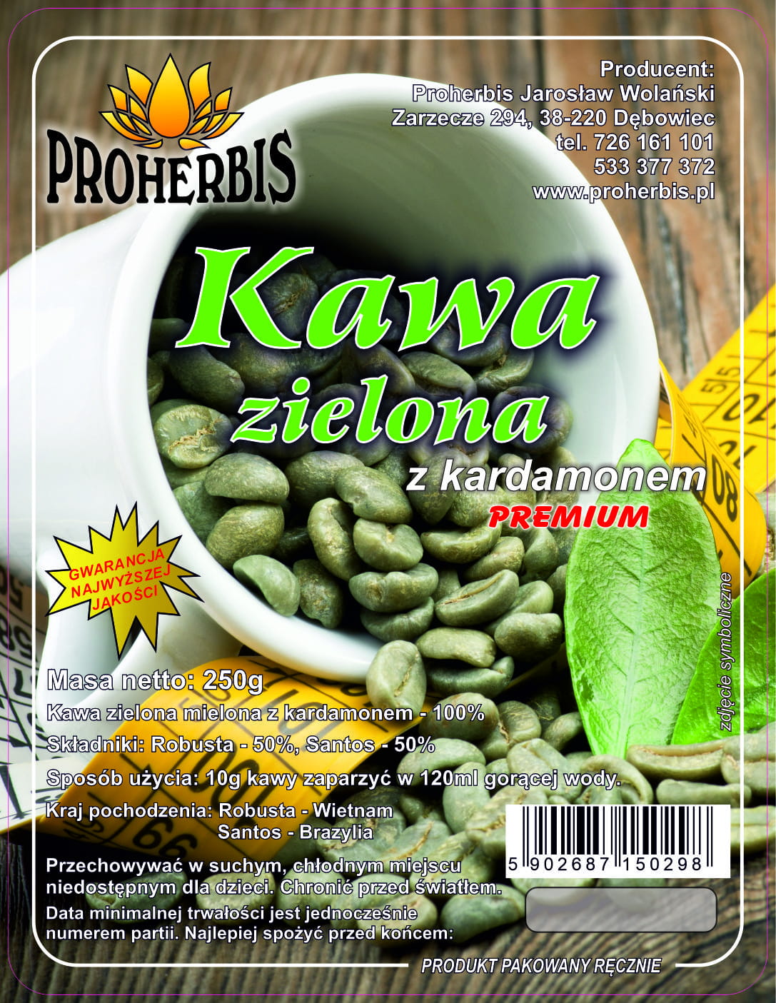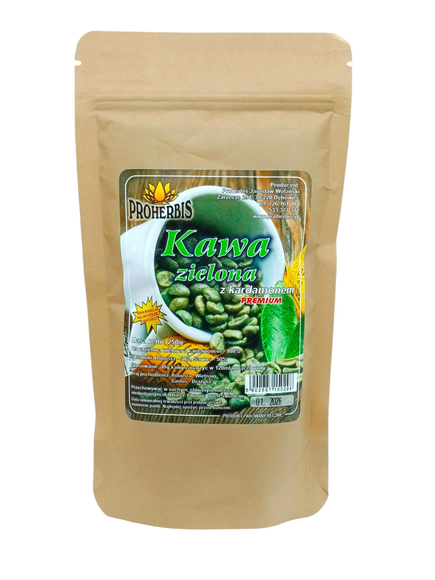 Kawa zielona mielona z kardamonem 100%, w tym:
