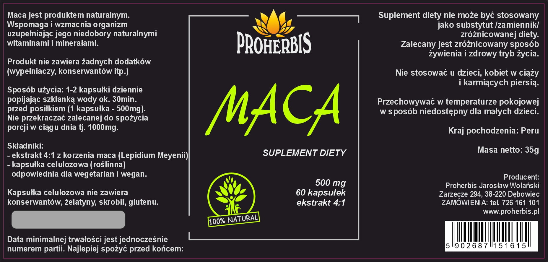 - ekstrakt 4:1 z korzenia maca (Lepidium meyenii)