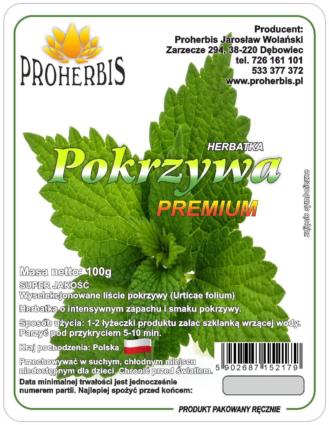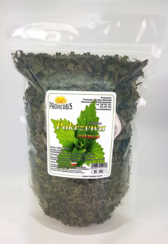 Herbatka o intensywnym smaku i zapachu pokrzywy.