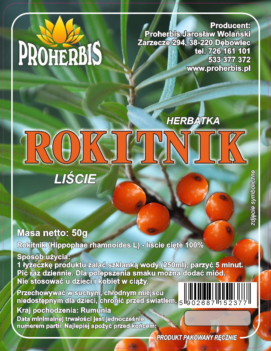 Rokitnik ( Hippophae rhammoides L) liście cięte 100%