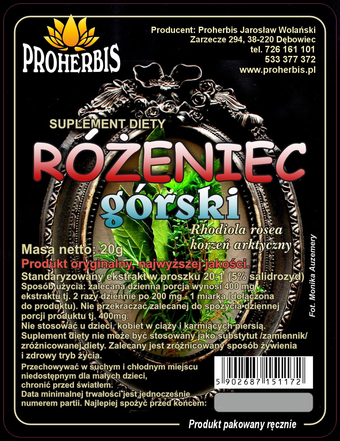Różeniec górski ekstrakt 20:1 (salidrozyd) 20g
